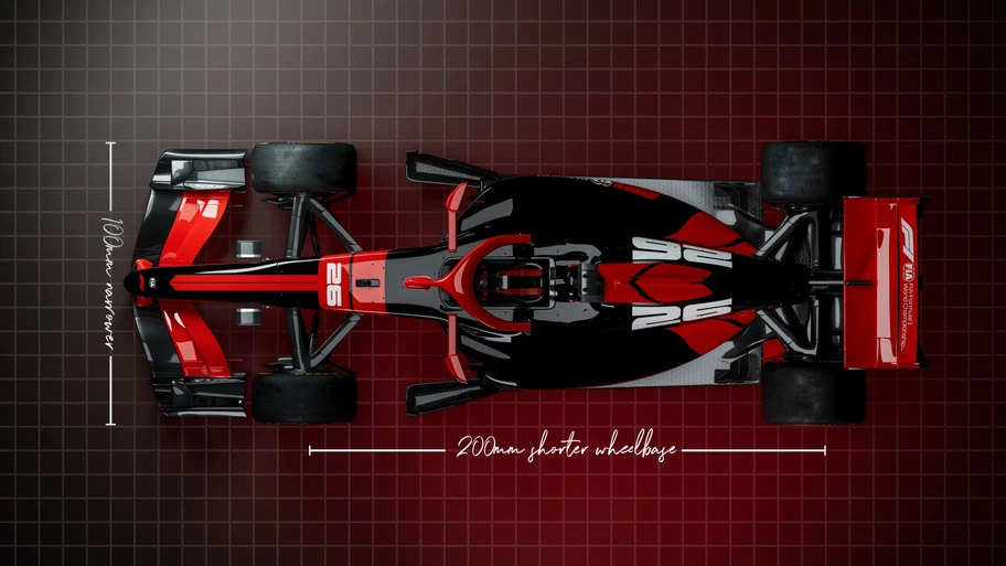 El nuevo monoplaza de F1 2026 ahora tendrá 3.4 metros entre ejes, 1.9 metros de ancho, el piso también se redujo 15 centímetros en su ancho y se le reducirán 30 kilos el peso máximo, para dejarlo en 770 kilos. Estas modificaciones representan una reducción significativa en el tamaño y peso comparado con generaciones anteriores.